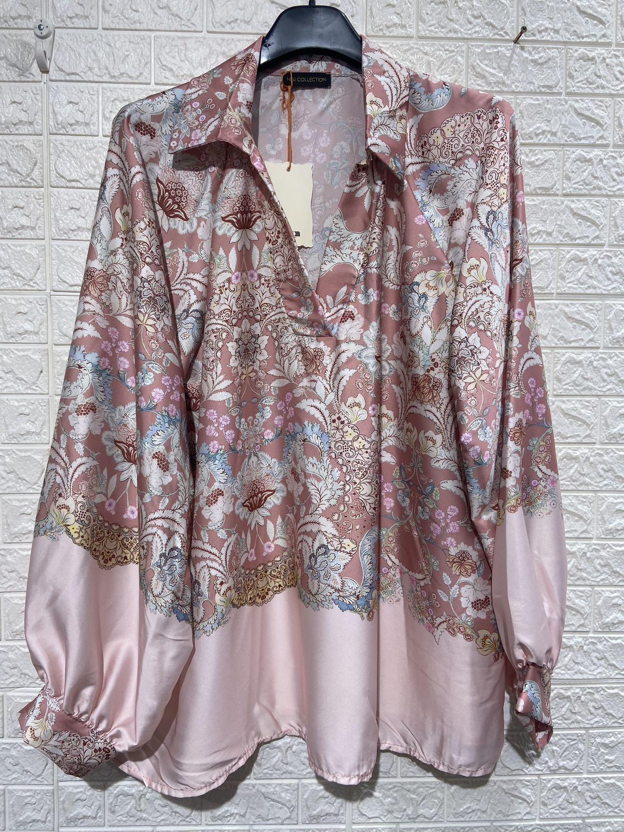 Women's blouse with a refined style, crafted from a lightweight and comfortable fabric. Its delicate floral print adds a chic and feminine touch, while the open collar and long sleeves cinched at the wrists create an elegant and flowing silhouette. An ideal piece for both a dressed-up outfit and enhancing an everyday look. One Size 38-44